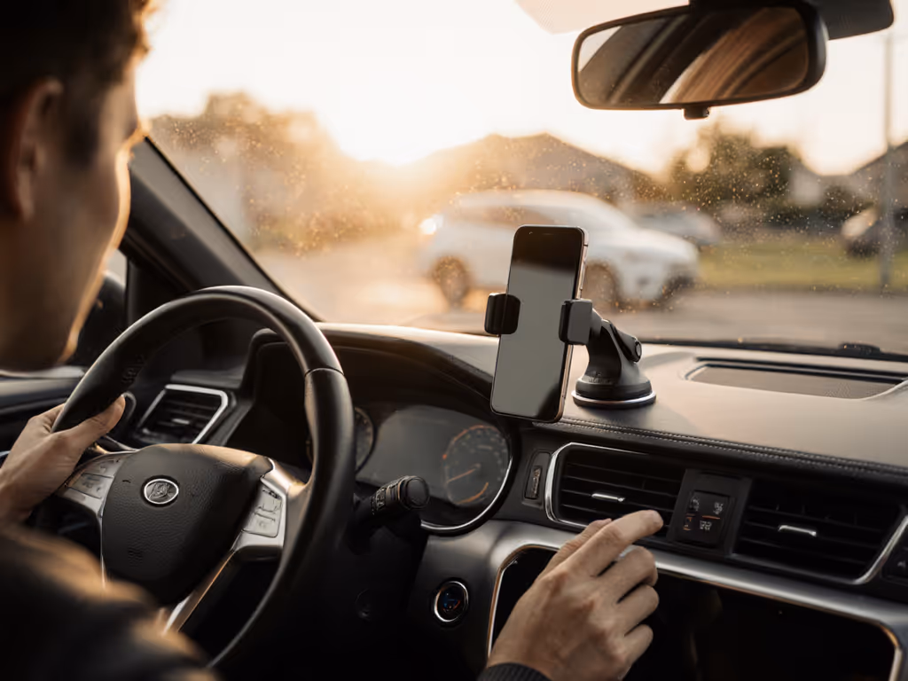 Rideshare and delivery workflows, one‑handed docking, quick-release car mounts